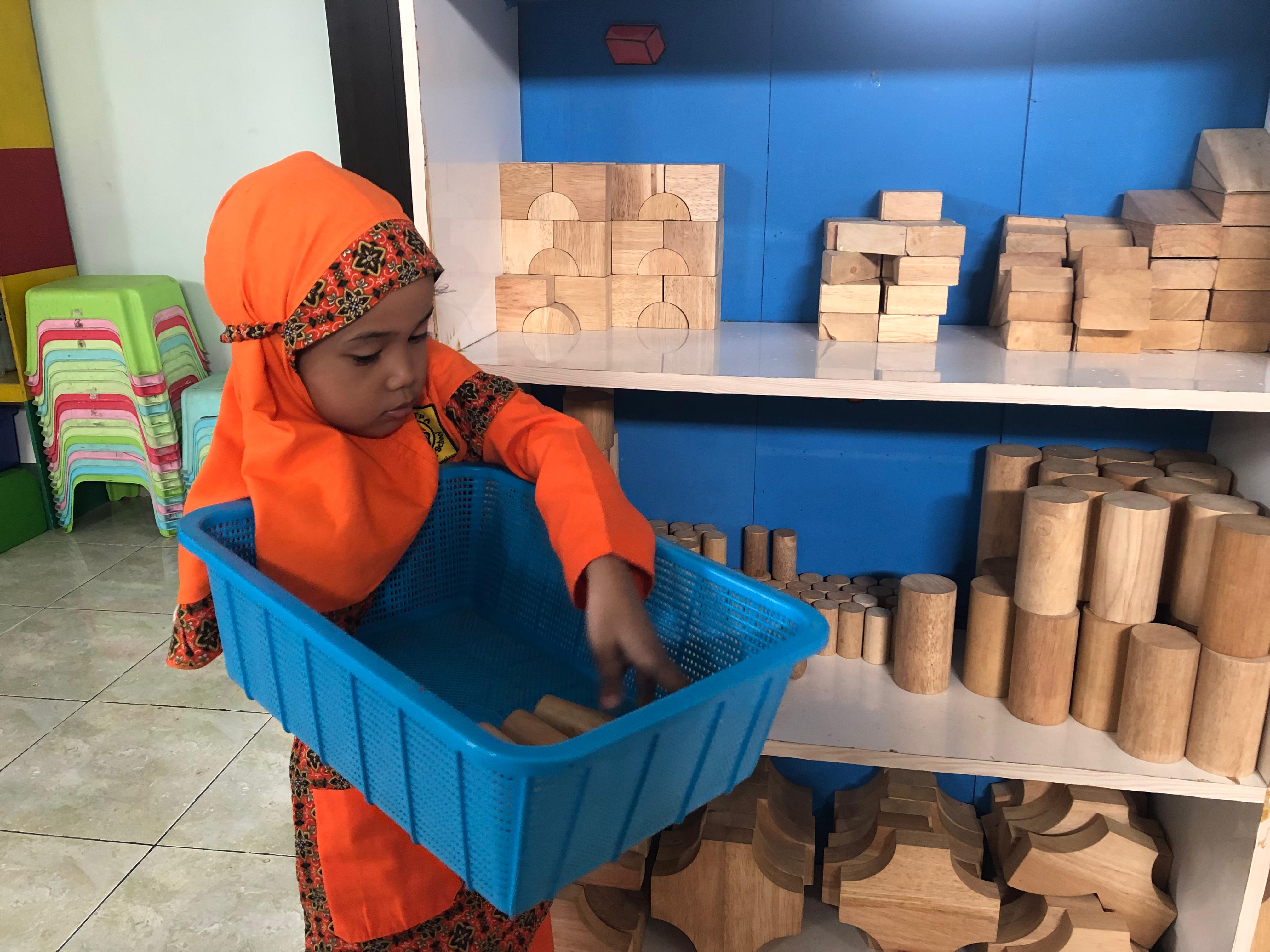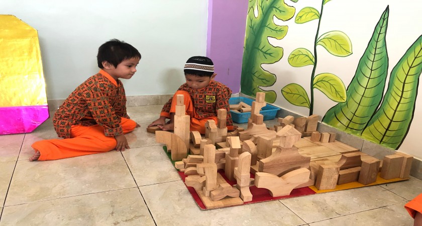 Hari ini, anak-anak bersemangat membangun kota impian mereka menggunakan balok-balok. Setiap balok disusun dengan hati-hati untuk menciptakan gedung-gedung tinggi, jembatan kokoh, dan jalan-jalan yang lebar. Melalui aktivitas ini, anak-anak belajar tentang konsep dasar matematika, seperti pengenalan bentuk dan ukuran, serta mengasah kemampuan motorik halus dan koordinasi mata-tangan. Selain itu, mereka juga belajar bekerja sama dengan teman-temannya, berbagi ide, dan saling membantu dalam menyusun balok-balok tersebut.